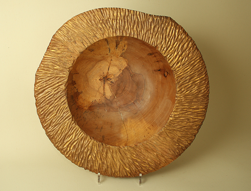 Spalted Lime Bowl with Carved and Gilded Rim